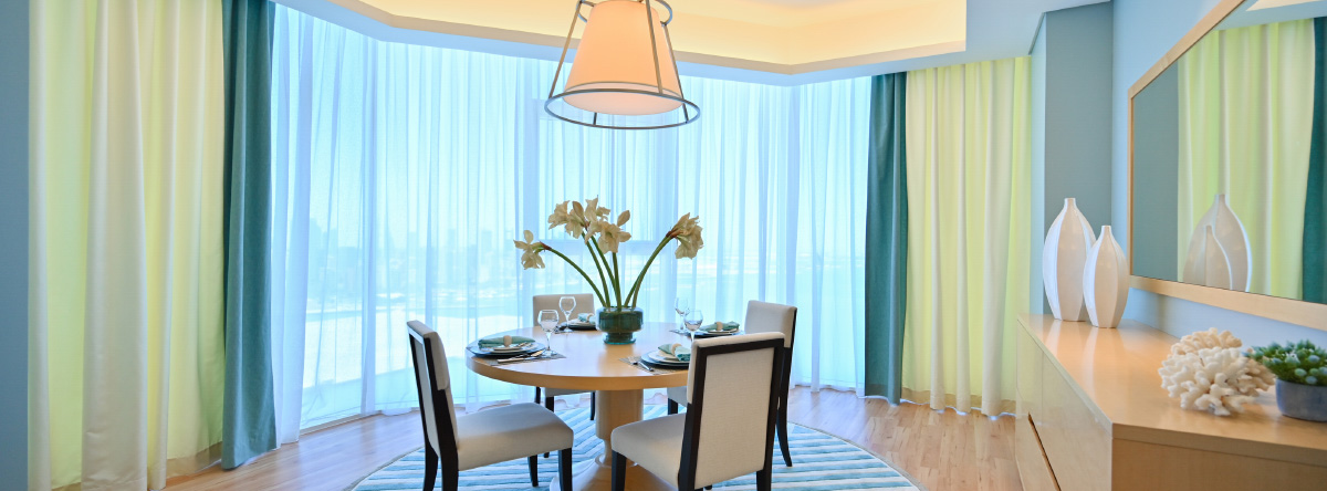 Fully furnished 2 bedroom apartment with sea view, available for rent in Fontana Gardens, located in Juffair, Bahrain. The apartment is curated with the highest quality materials, offering a new style of luxury urban living.