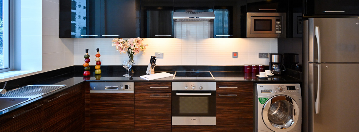 The 3 BR apartment and maid apartments have a semi-open kitchen