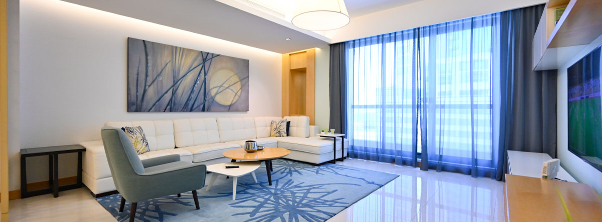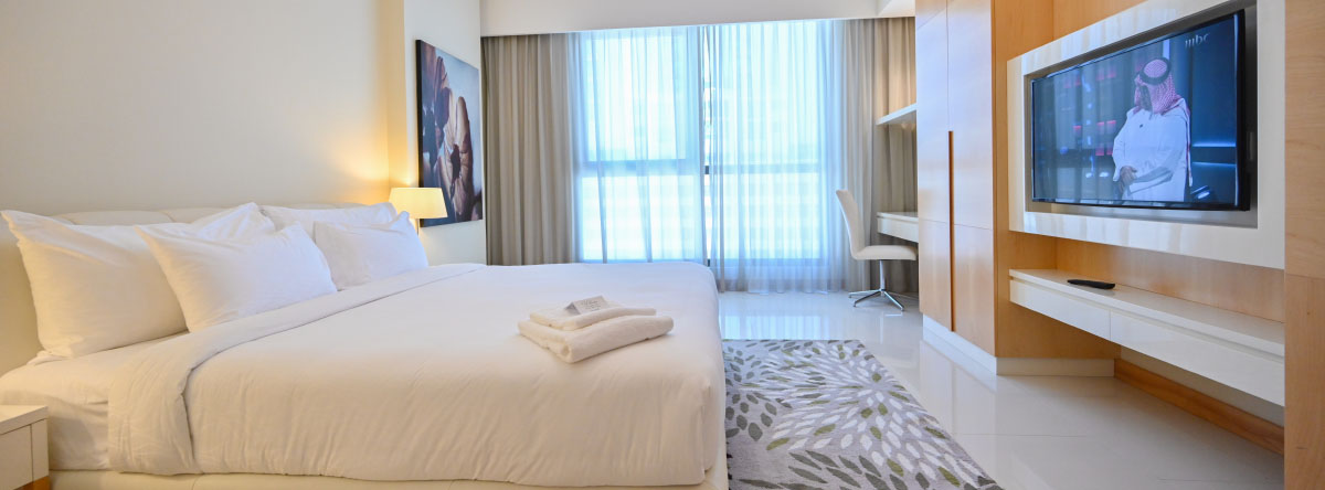 الشقة بغرفتي نوم تحتوي على مطبخ مفتوح