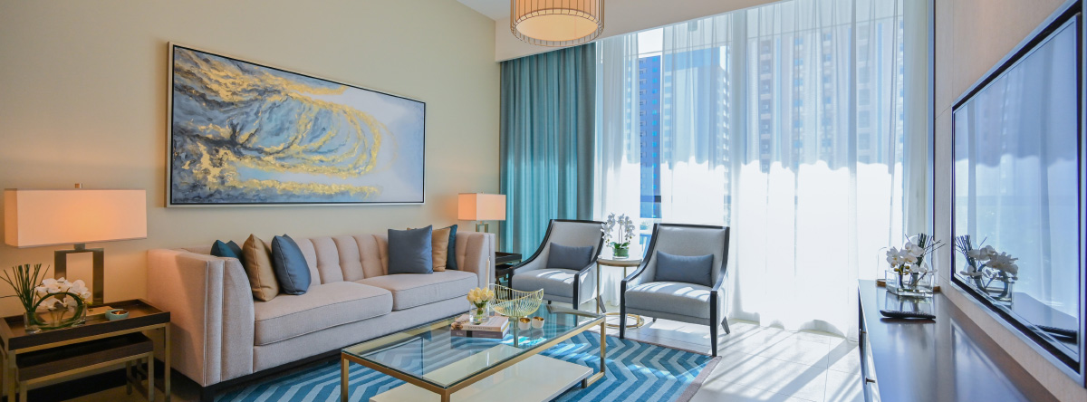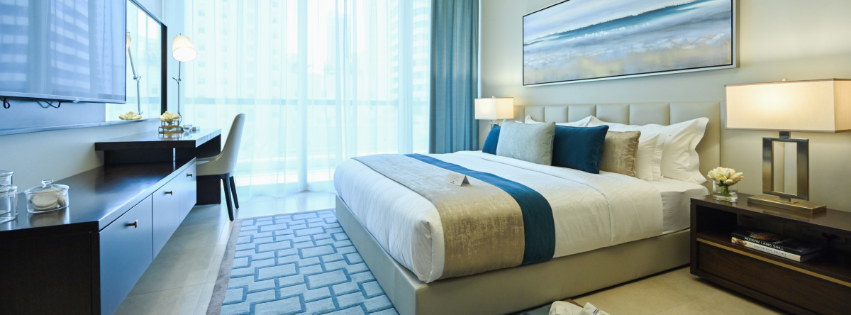 الشقة بغرفتي نوم تحتوي على مطبخ مغلق