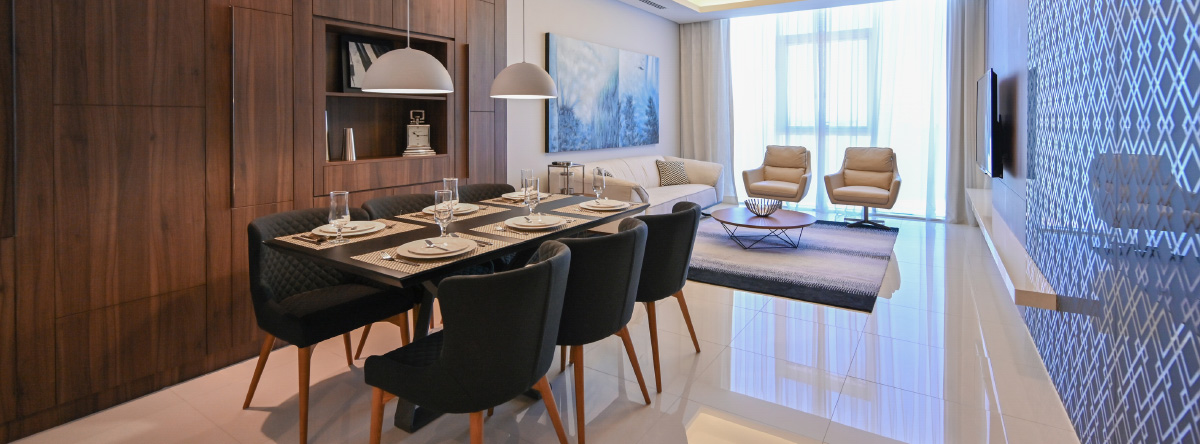 شقة مؤثثة بالكامل من 3 غرف نوم متاحة للإيجار في فونتانا جاردن ، والتي تضم 24 مخططًا مختلفًا عبر ثلاثة أبراج.